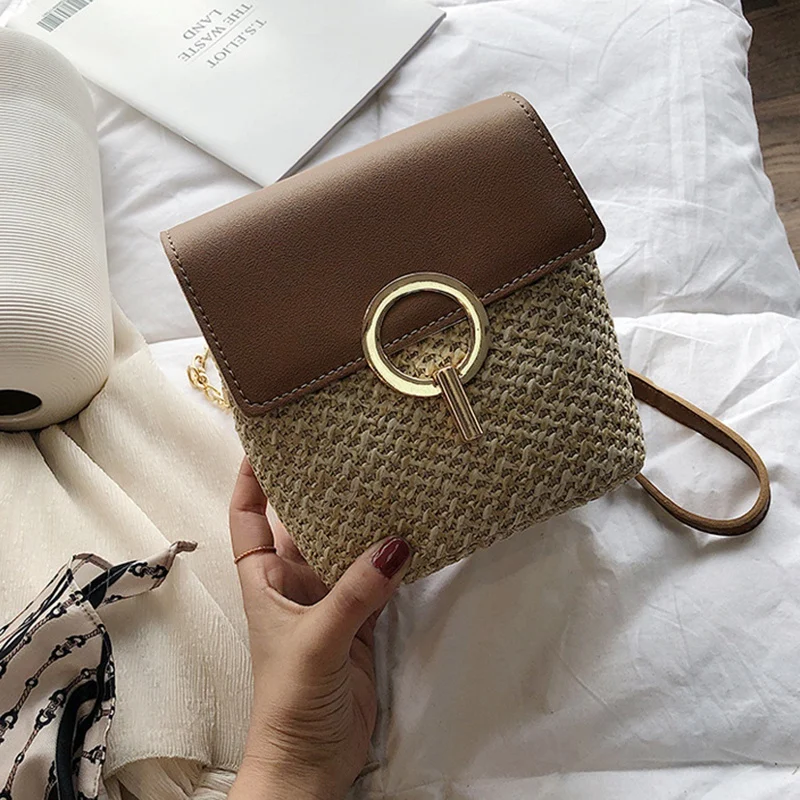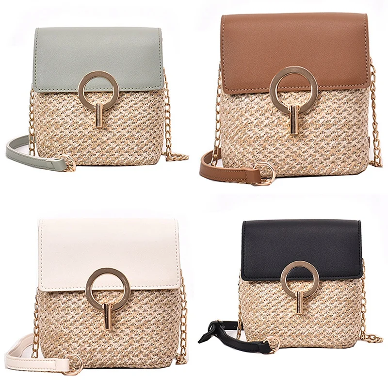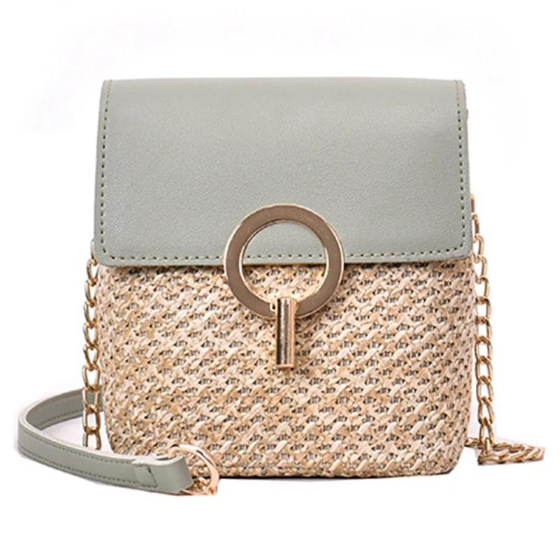Straw Shoulder Bag Flip Bag Lady Handbag Female Retro Beach Rattan Bag Chain Green